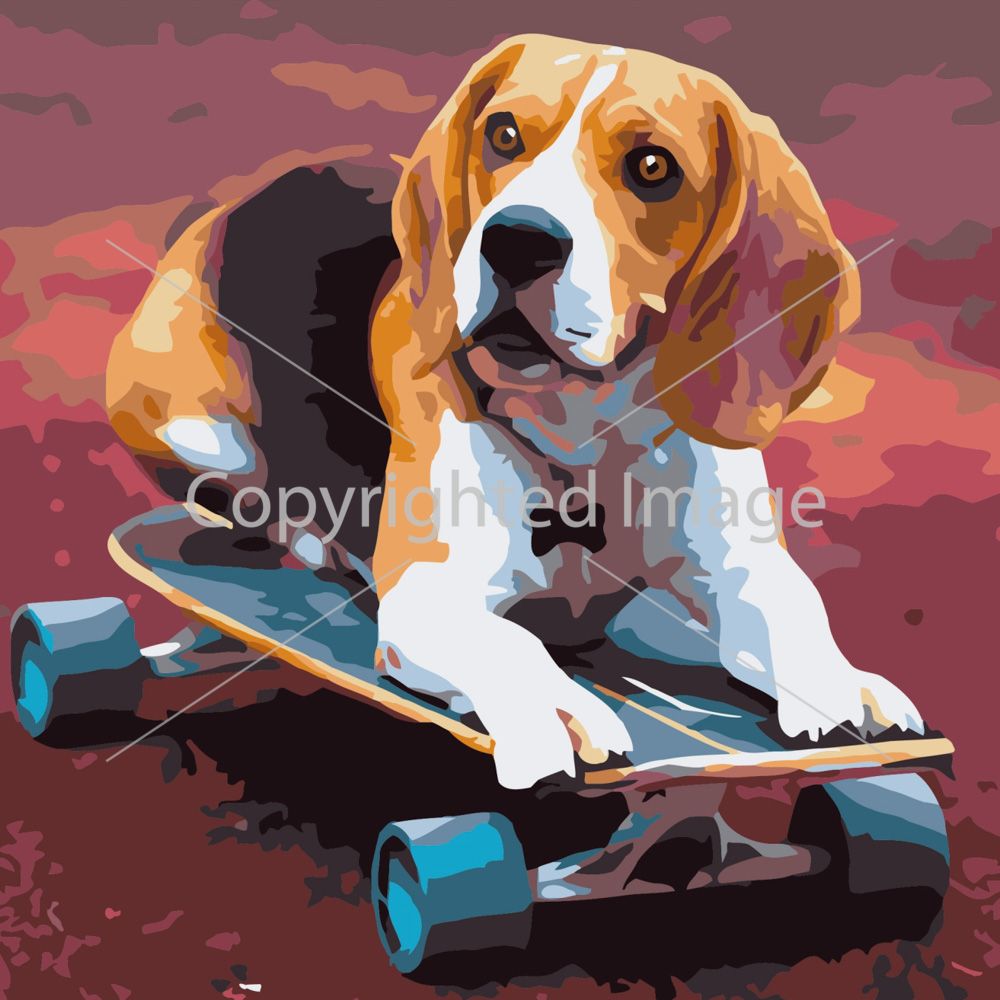 Картина за номерами Strateg ПРЕМІУМ Песик на скейтборді розміром 40х40 см (SK025)