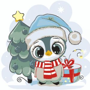 Картина за номерами Strateg ПРЕМІУМ Пінгвин з ялинкою розміром 30х30 см (ES230)