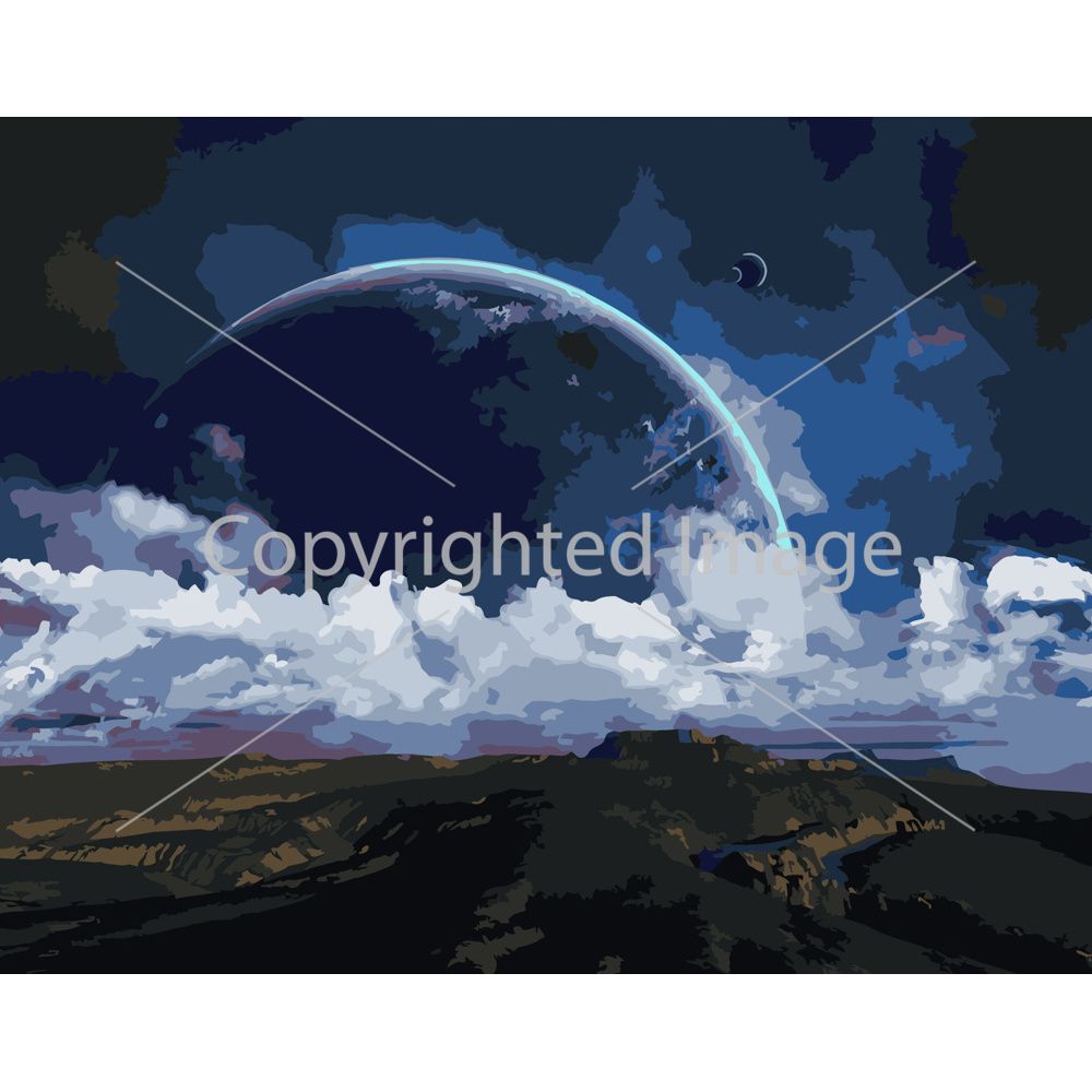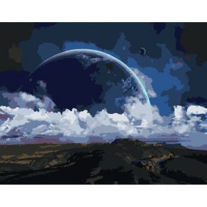 Картина за номерами Strateg ПРЕМІУМ Планета на горизонті розміром 40х50 см (DY170)