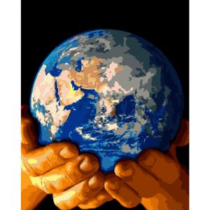 Картина за номерами Strateg ПРЕМІУМ Планета в наших руках розміром 40х50 см (GS191)