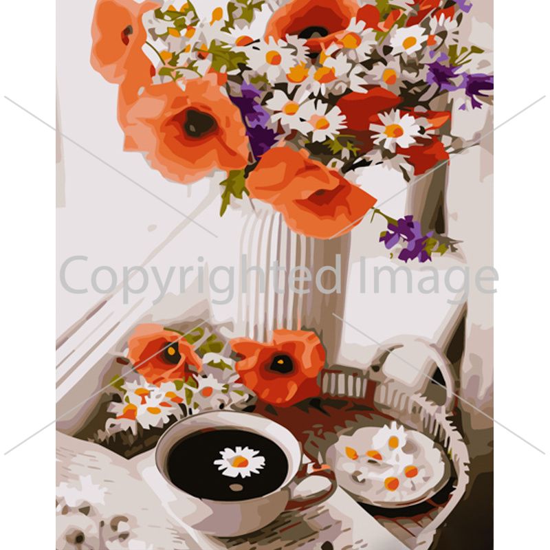 Картина за номерами Strateg ПРЕМІУМ Польові квіти з чаєм з лаком розміром 40х50 см (GS1237)
