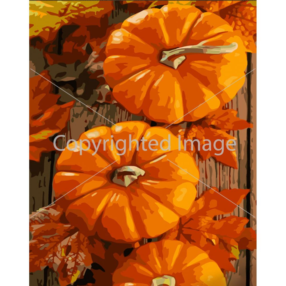 Картина за номерами Strateg ПРЕМІУМ Помаранчеві гарбузи з лаком розміром 30х40 см (SS6782)
