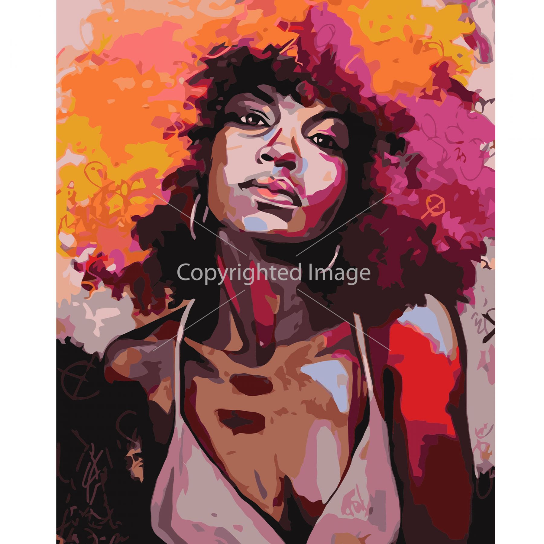 Картина за номерами Strateg ПРЕМІУМ Поп-арт: Дівчина-соул з лаком розміром 40х50 см VA-0761