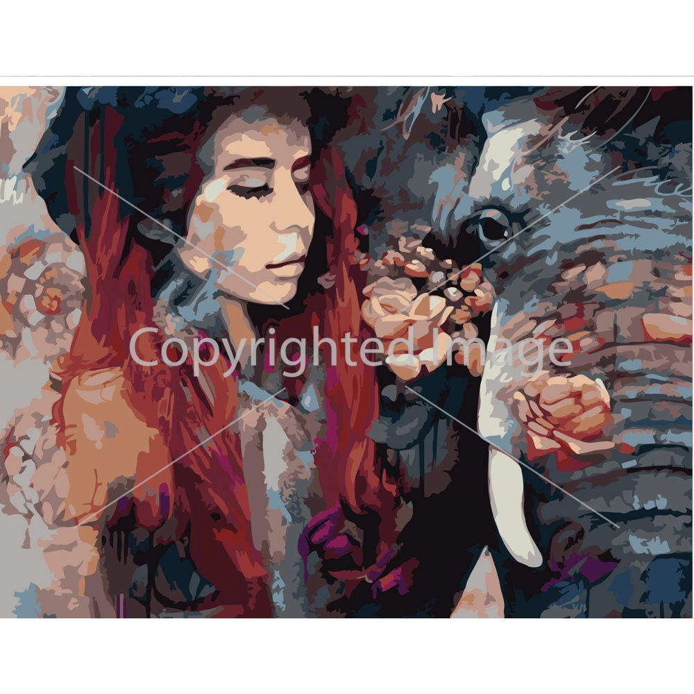 Картина за номерами Strateg ПРЕМІУМ Поп-арт: Дівчина та слон розміром 40х50 см (GS166)