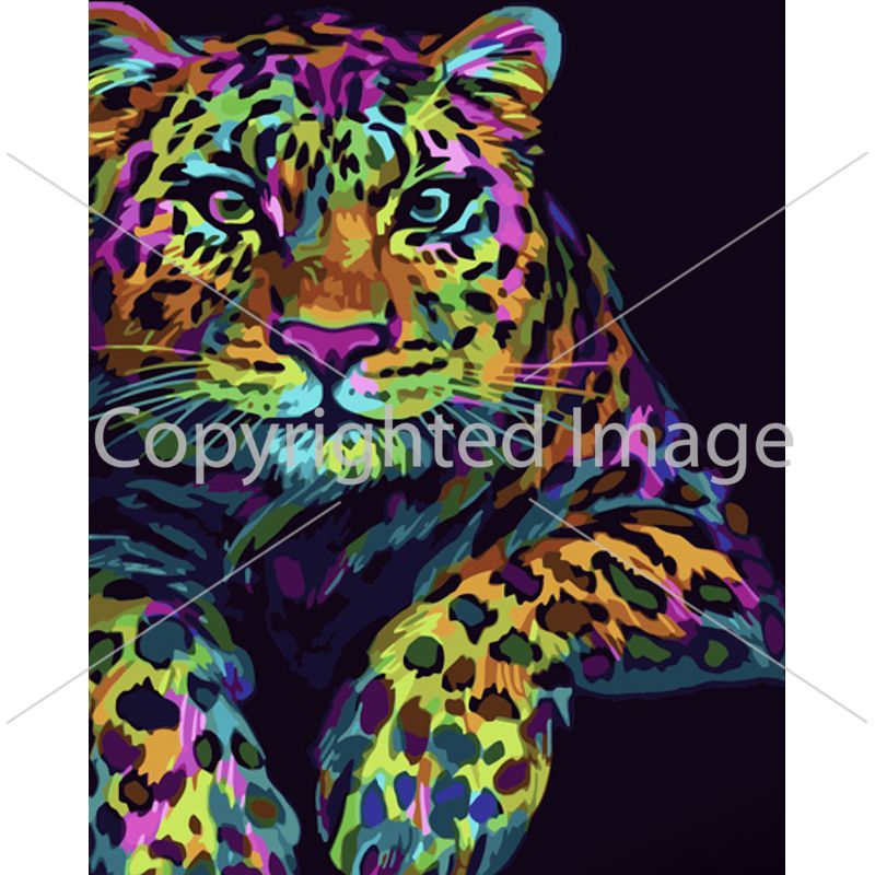 Картина за номерами Strateg ПРЕМІУМ Поп-арт леопард з лаком та з рівнем розміром 40х50 см (GS1541)