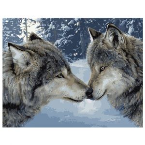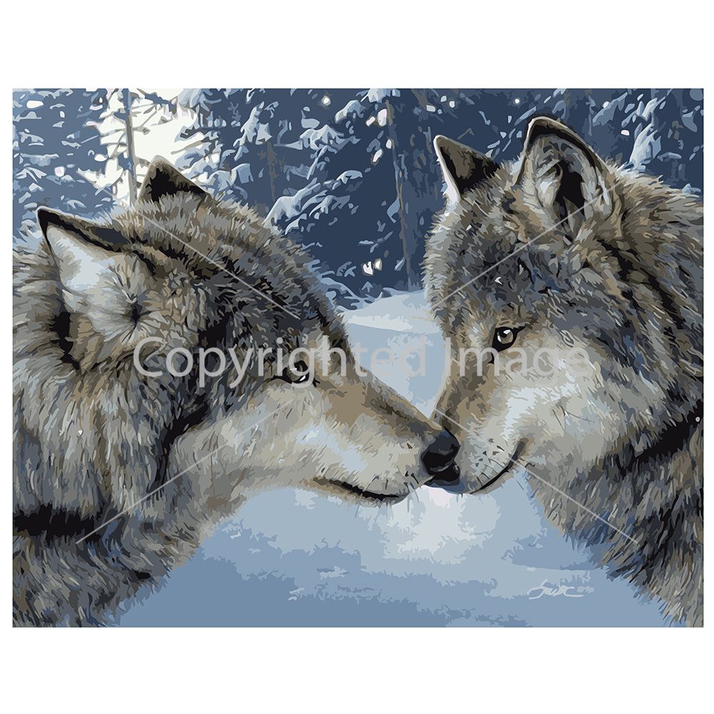 Картина за номерами Strateg ПРЕМІУМ Поцілунок вовків з лаком розміром 40х50 см VA-1651