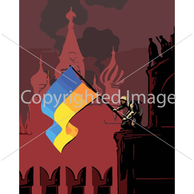 Картина за номерами Strateg ПРЕМІУМ Прапор України над кремлем розміром 40х50 см (GS736)