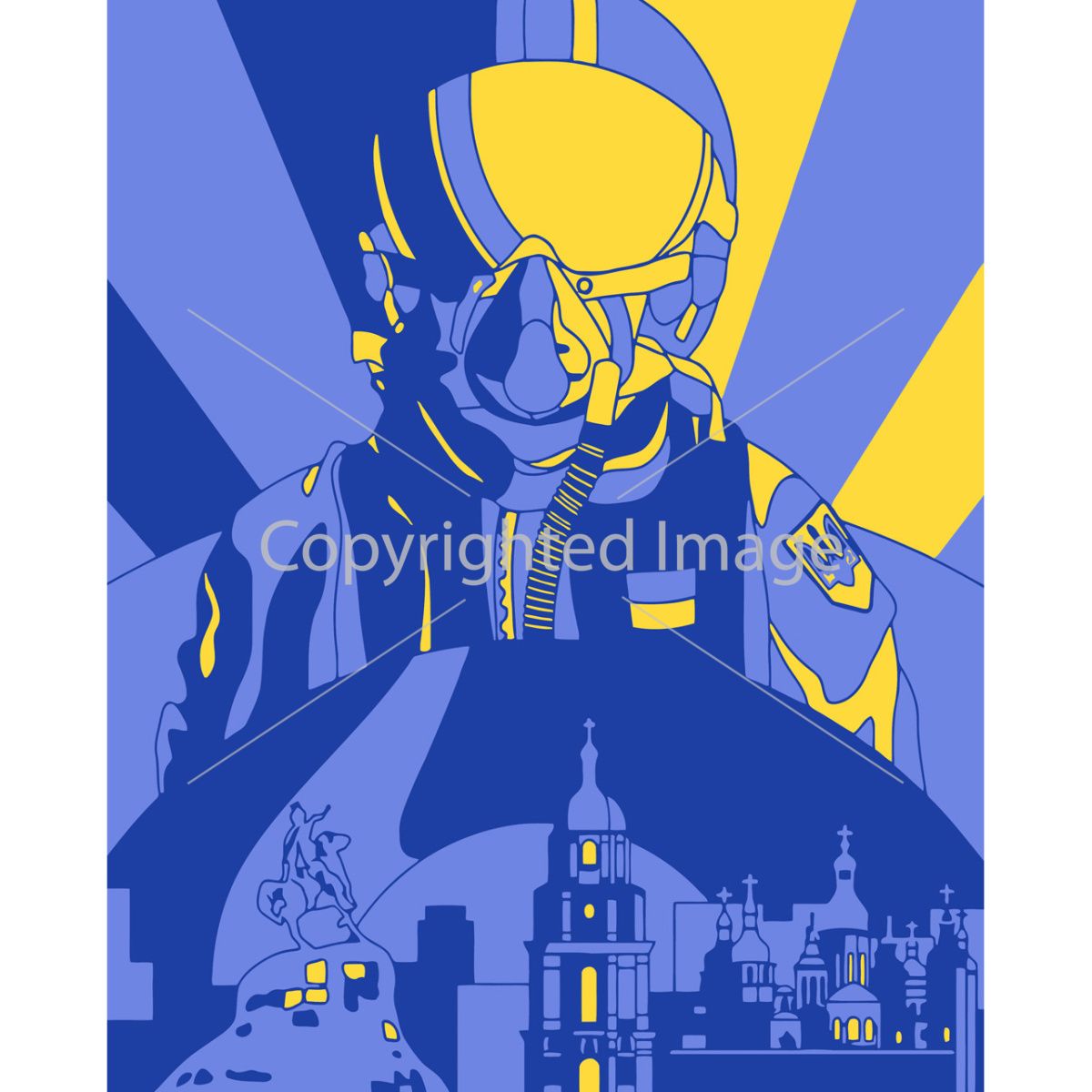 Картина за номерами Strateg ПРЕМІУМ Привид Києва з лаком розміром 30х40 см (SS-6564)
