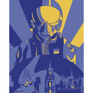 Картина за номерами Strateg ПРЕМІУМ Привид Києва з лаком розміром 40х50 см (SY6537)