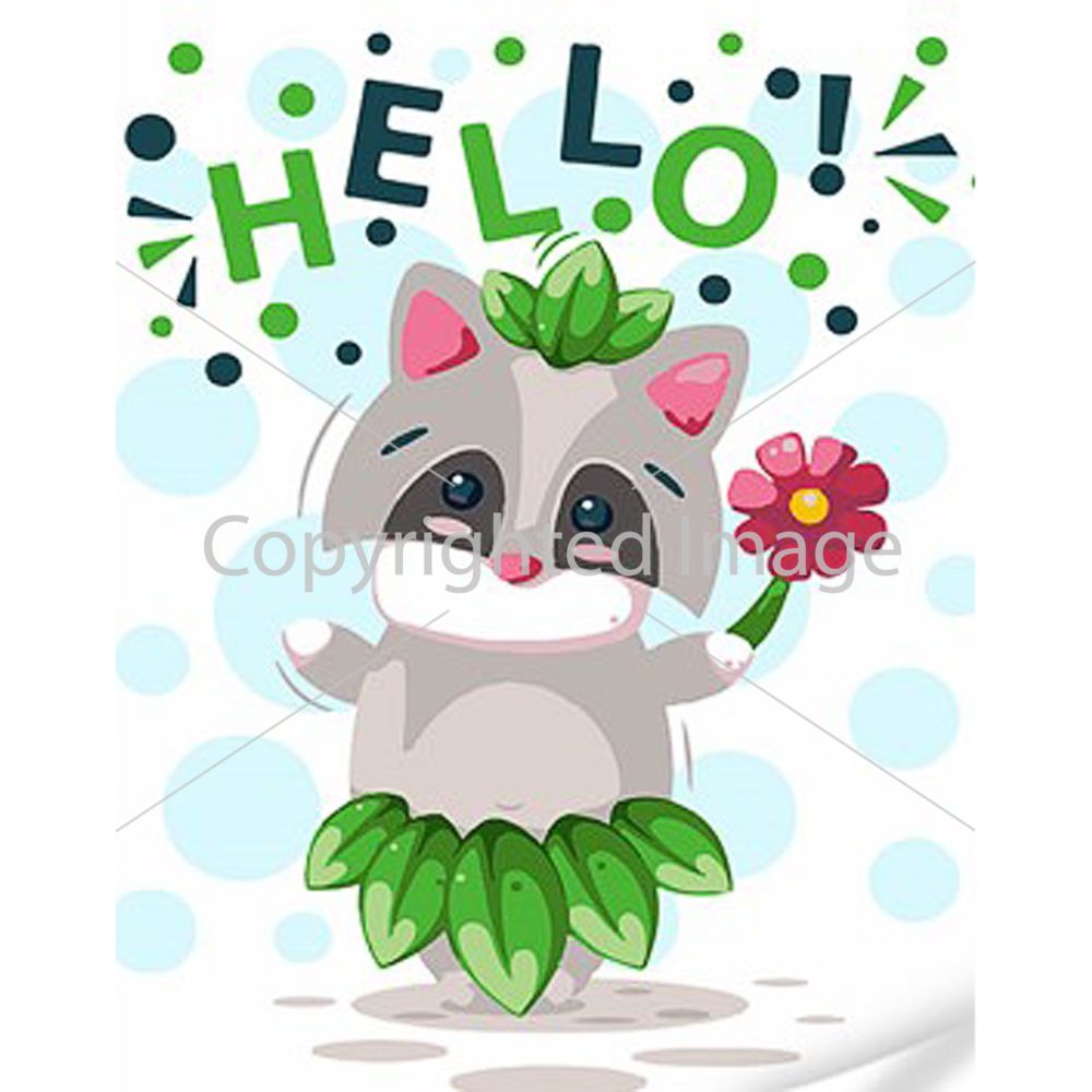 Картина за номерами Strateg ПРЕМІУМ Привітливий єнотик з лаком та з рівнем розміром 30х40 см (SS1072)