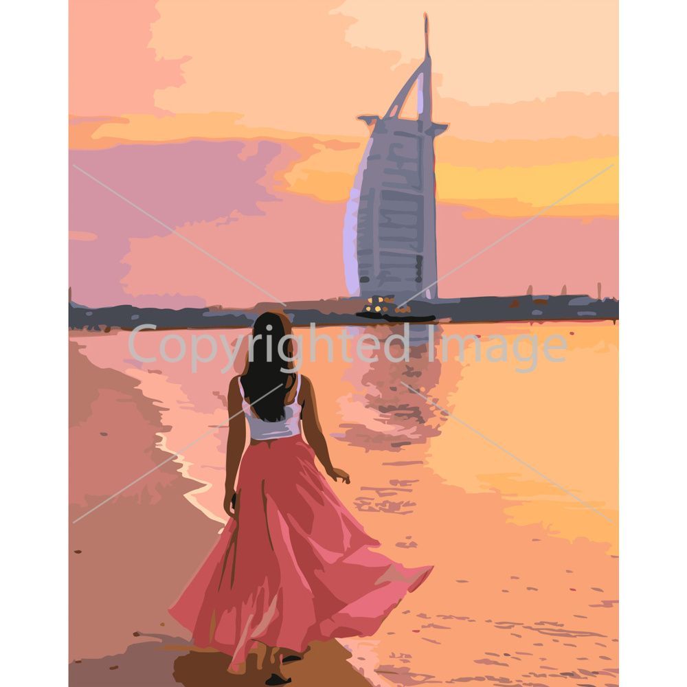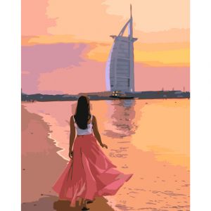 Картина за номерами Strateg ПРЕМІУМ Прогулянка берегом в Дубаї розміром 40х50 см (GS192)