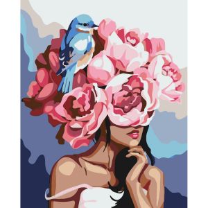 Картина за номерами Strateg ПРЕМІУМ Птаха у піонах з лаком розміром 30х40 см (SS-6491)