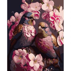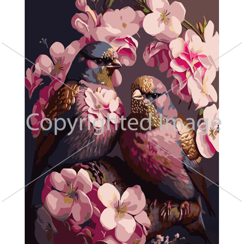 Картина за номерами Strateg ПРЕМІУМ Птахи в квітах розміром 40х50 см (GS958)