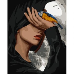 Картина за номерами Strateg ПРЕМІУМ Пташка в руці розміром 40х50 см (GS815)