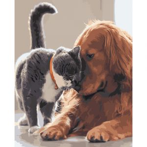 Картина за номерами Strateg ПРЕМІУМ Пухнаста дружба розміром 40х50 см (GS405)
