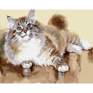 Картина за номерами Strateg ПРЕМІУМ Пухнастий котик розміром 40х50 см (GS1323)