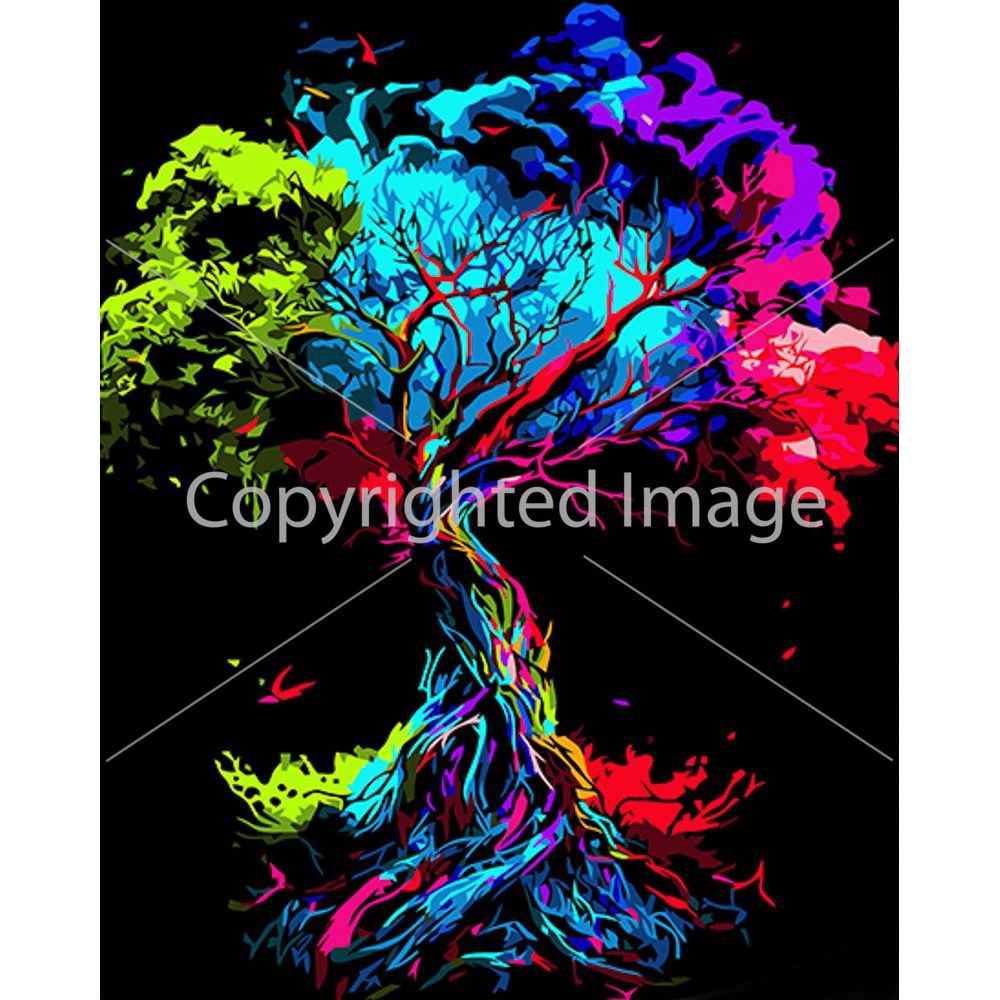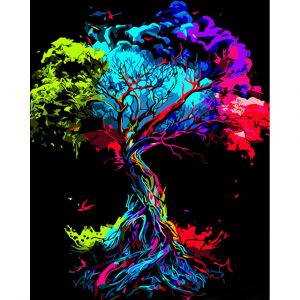 Картина за номерами Strateg ПРЕМІУМ Райдужне дерево на чорному фоні розміром 40х50 см (AH1014)