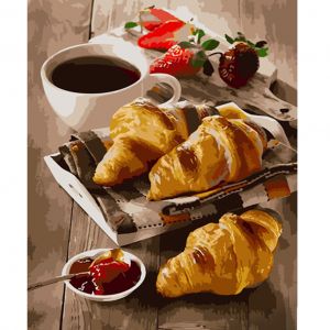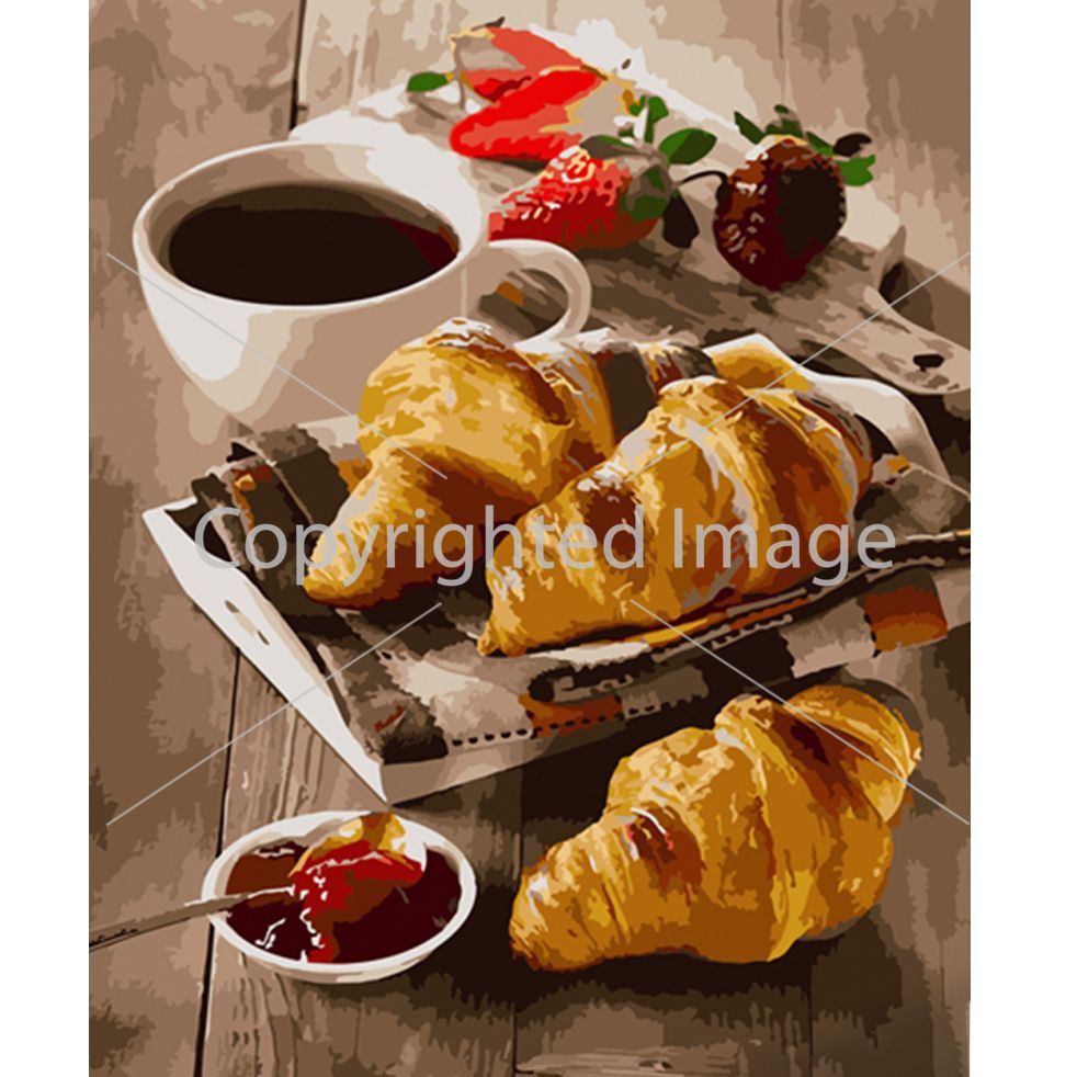 Картина за номерами Strateg ПРЕМІУМ Ранкові круасани розміром 40х50 см (HH022)