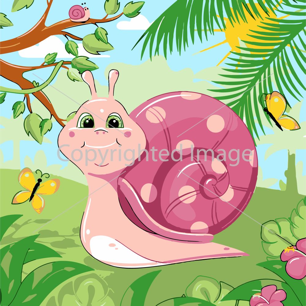 Картина за номерами Strateg ПРЕМІУМ Равлик з метеликами з лаком та з рівнем розміром 30х30 см (ES-0823)