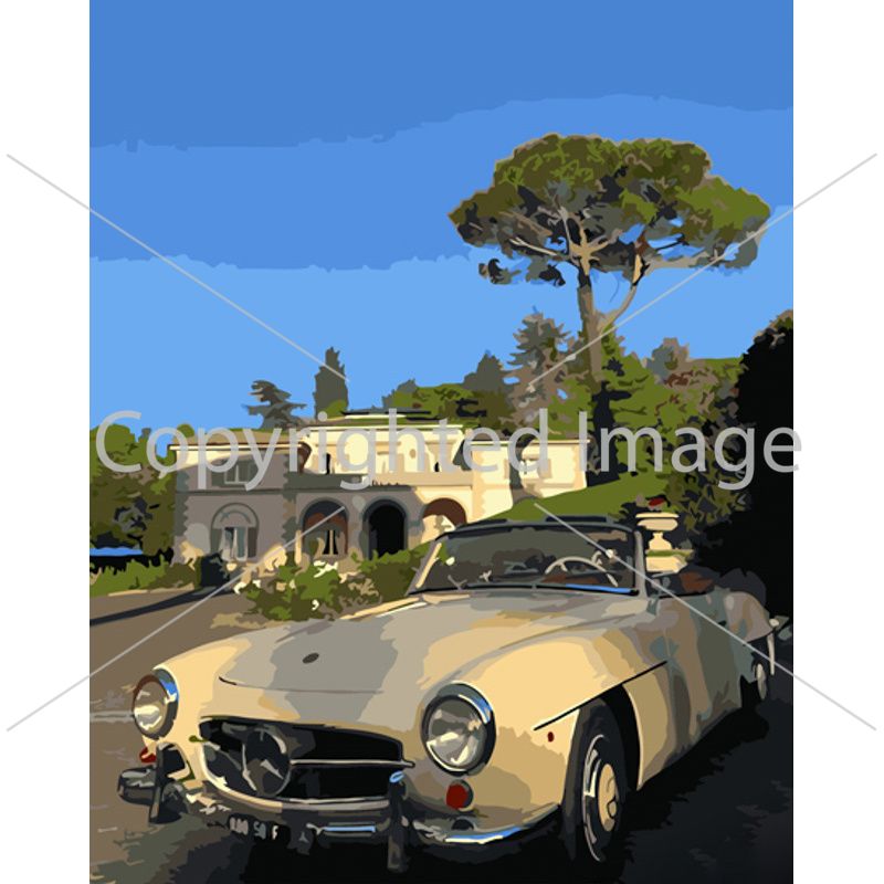 Картина за номерами Strateg ПРЕМІУМ Ретро авто біля маєтку розміром 40х50 см (GS1287)
