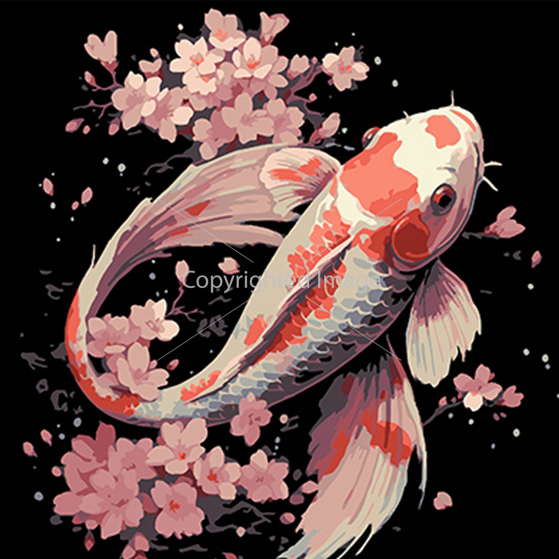 Картина за номерами Strateg ПРЕМІУМ Риба в акваріумі квітів на чорному фоні розміром 40х40 см (AV4040-73)