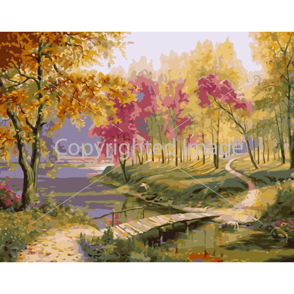 Картина за номерами Strateg ПРЕМІУМ Річка поміж дерев розміром 40х50 см (GS127)