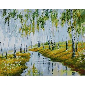 Картина за номерами Strateg ПРЕМІУМ Річка серед беріз розміром 40х50 см (GS110)