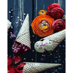 Картина за номерами Strateg ПРЕМІУМ Ріжки морозива з лаком розміром 40х50 см (SY6801)