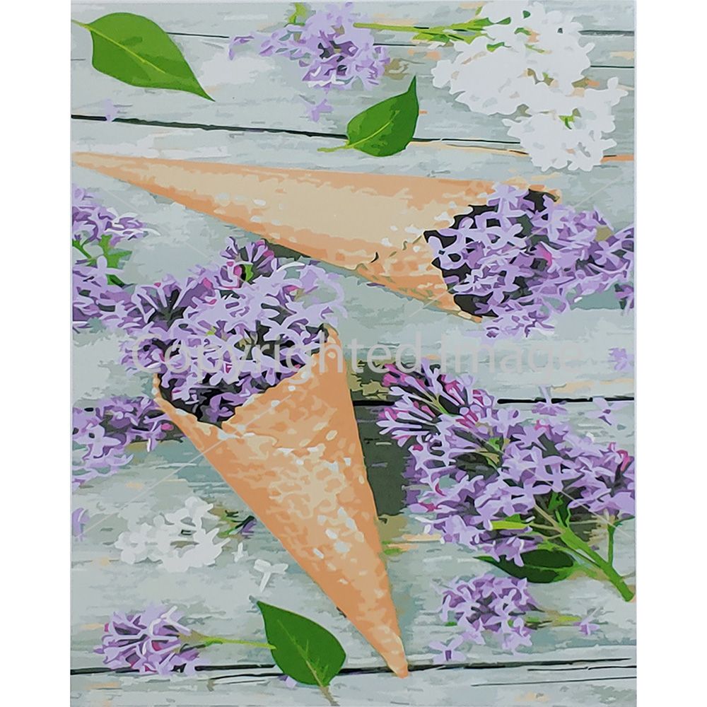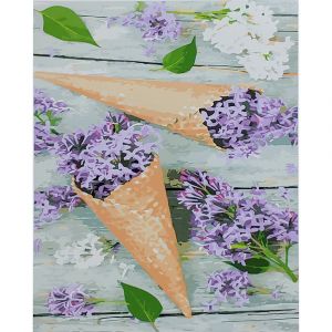 Картина за номерами Strateg ПРЕМІУМ Ріжок із бузком з лаком розміром 40х50 см (SY6856)