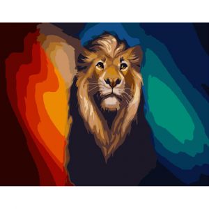 Картина за номерами Strateg ПРЕМІУМ Різнобарвний лев розміром 40х50 см (GS375)