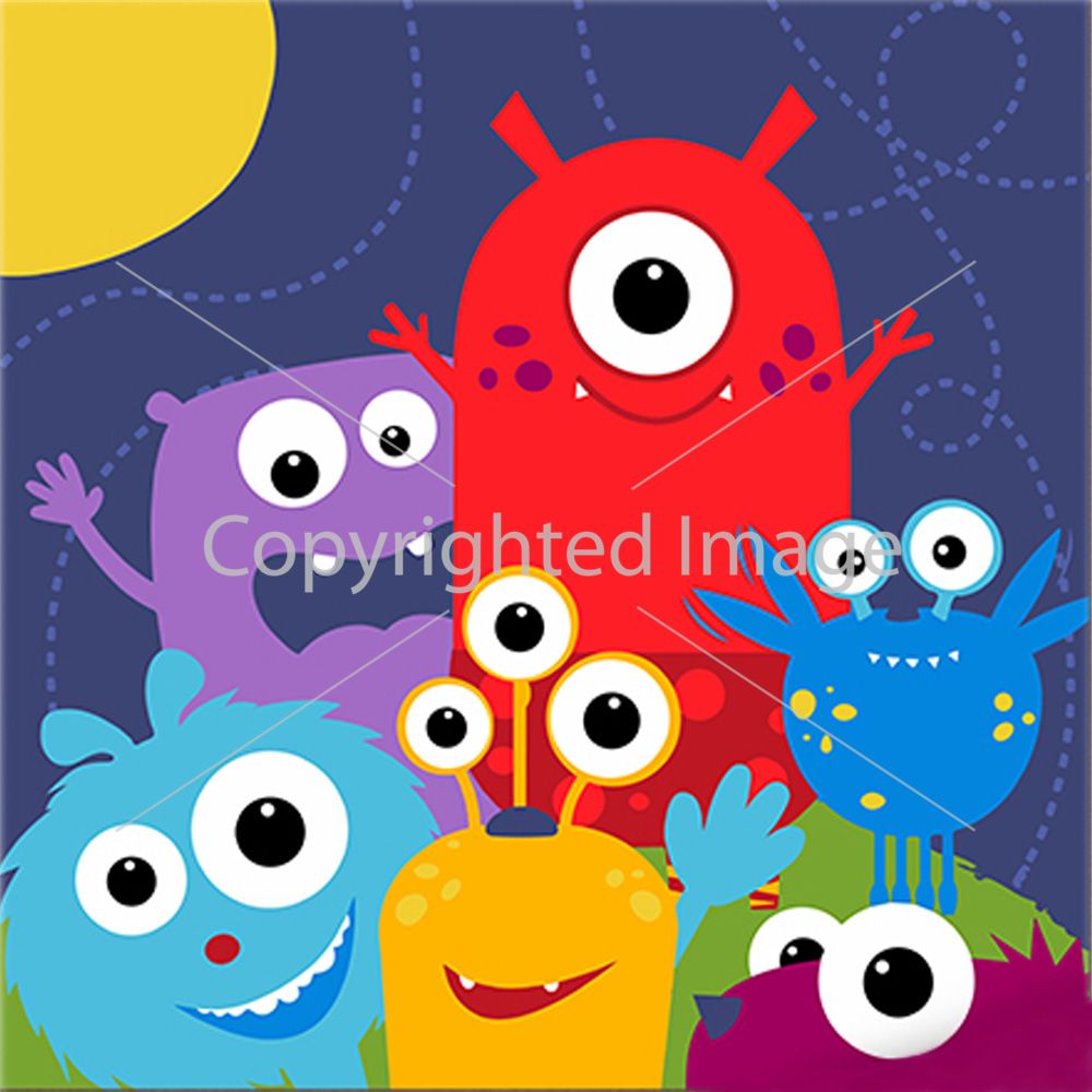 Картина за номерами Strateg ПРЕМІУМ Різнокольорові монстри з лаком та з рівнем розміром 30х30 см (ES-0808)