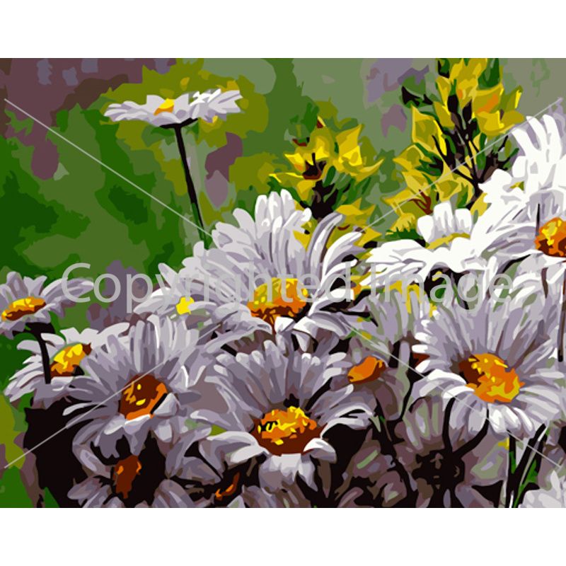 Картина за номерами Strateg ПРЕМІУМ Ромашки -2 з лаком розміром 40х50 см (GS1158)