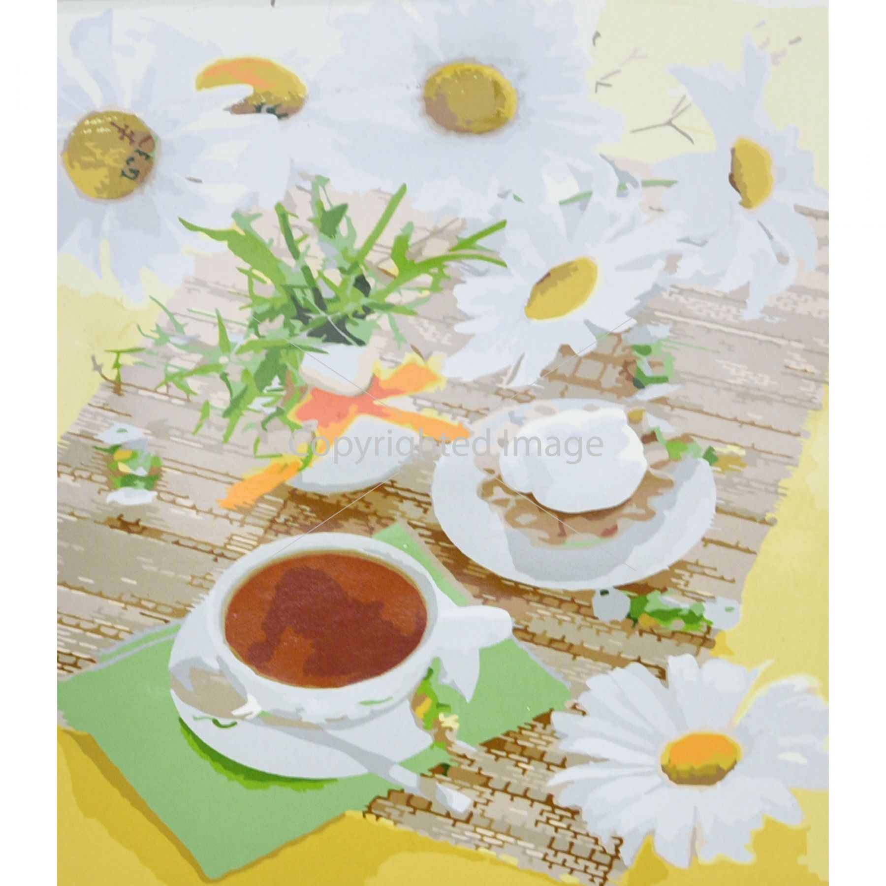 Картина за номерами Strateg ПРЕМІУМ Ромашки та чай з лаком та з рівнем розміром 30х40 см (SS6459)