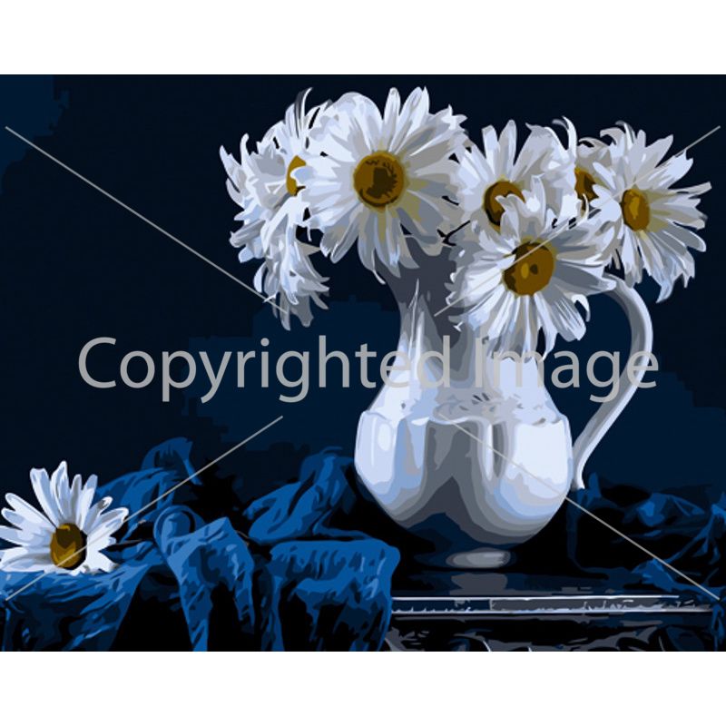 Картина за номерами Strateg ПРЕМІУМ Ромашки в білому глечику розміром 40х50 см (GS1135)