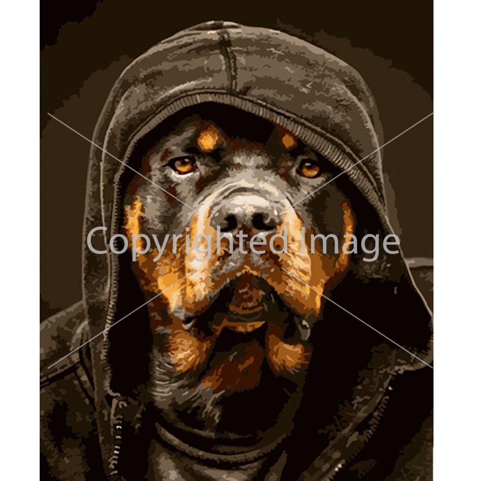 Картина за номерами Strateg ПРЕМІУМ Ротвелер у капюшоні розміром 40х50 см (HH038)