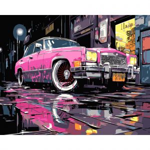 Картина за номерами Strateg ПРЕМІУМ Рожева машина на чорному фоні розміром 40х50 см (AH1175-17)