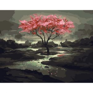 Картина за номерами Strateg ПРЕМІУМ Рожеве дерево розміром 40х50 см (GS323)