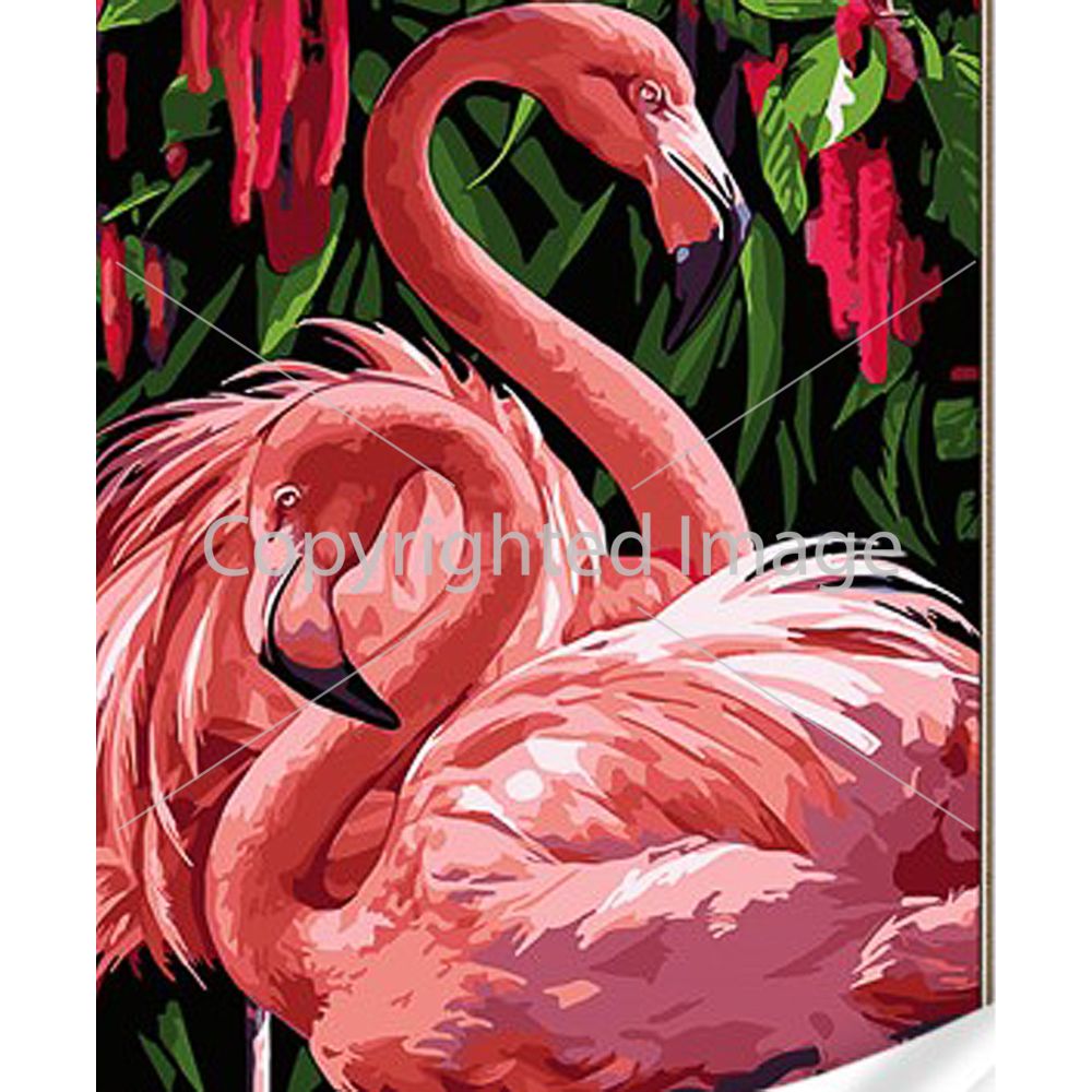 Картина за номерами Strateg ПРЕМІУМ Рожеві фламінго з лаком та з рівнем розміром 30х40 см (SS1052)