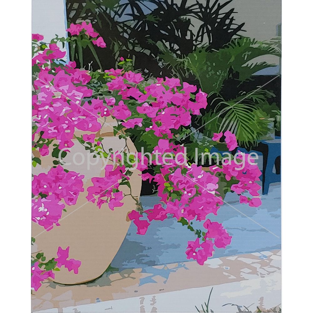 Картина за номерами Strateg ПРЕМІУМ Рожеві квіти на підвіконні з лаком розміром 40х50 см (SY6824)