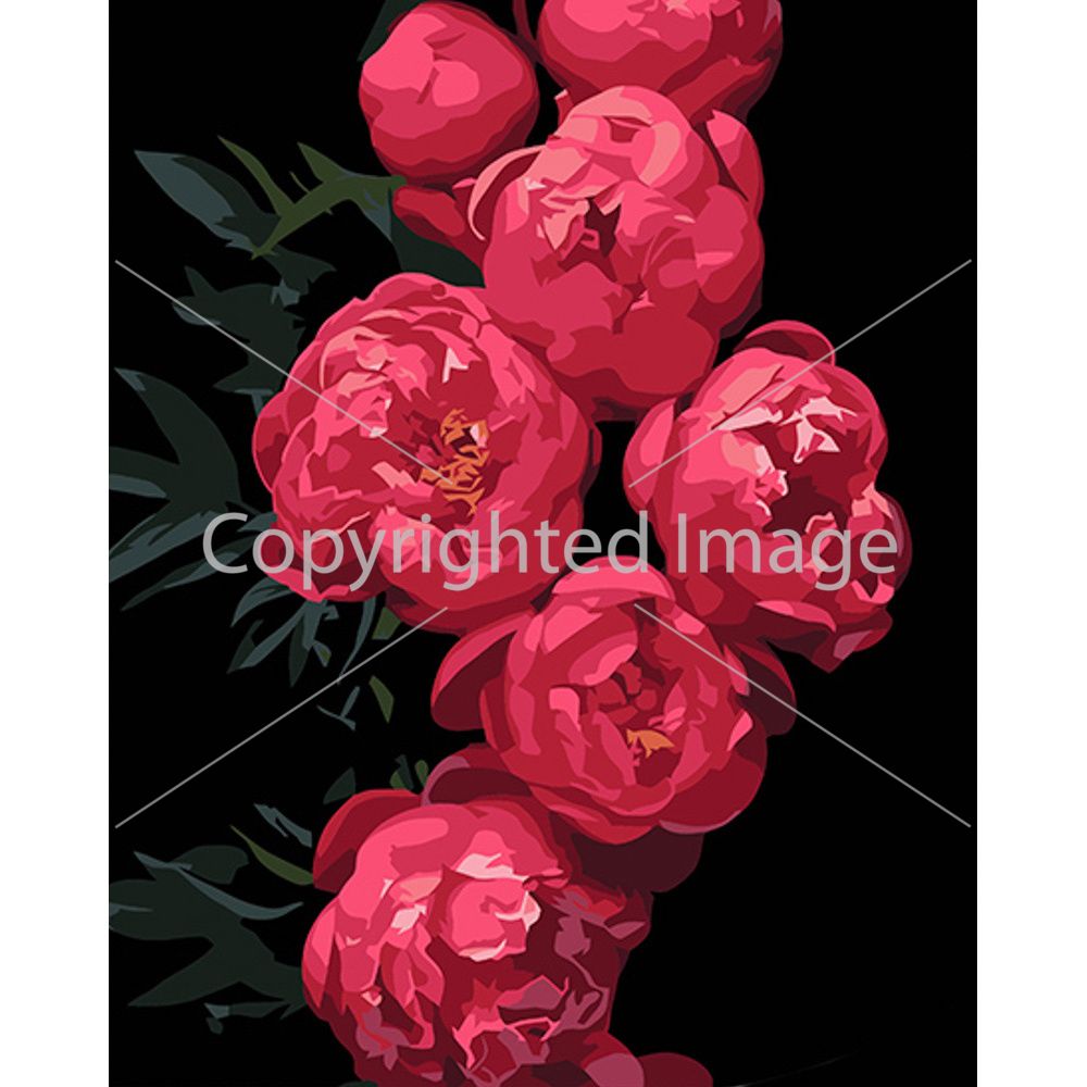 Картина за номерами Strateg ПРЕМІУМ Рожеві півонії на чорному фоні розміром 40х50 см (AH1035)