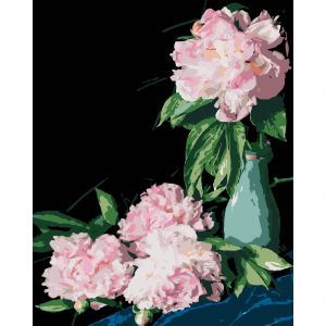 Картина за номерами Strateg ПРЕМІУМ Рожеві півонії на чорному фоні розміром 40х50 см (AH1186-18)