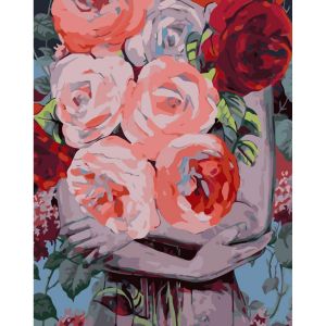 Картина за номерами Strateg ПРЕМІУМ Рожеві півонії в обіймах з лаком розміром 40х50 см VA-3343