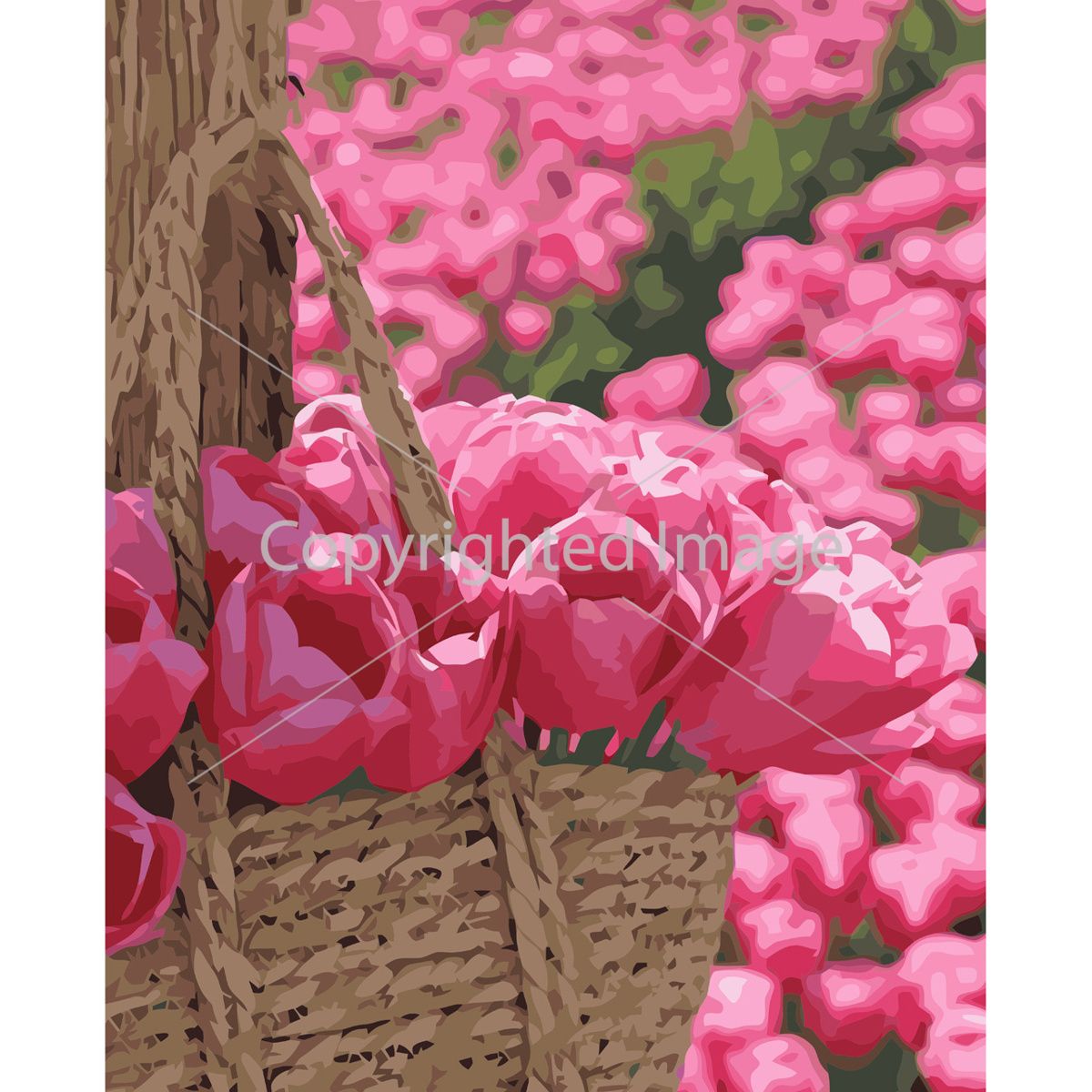 Картина за номерами Strateg ПРЕМІУМ Рожеві тюльпани з лаком розміром 40х50 см VA-3664