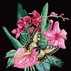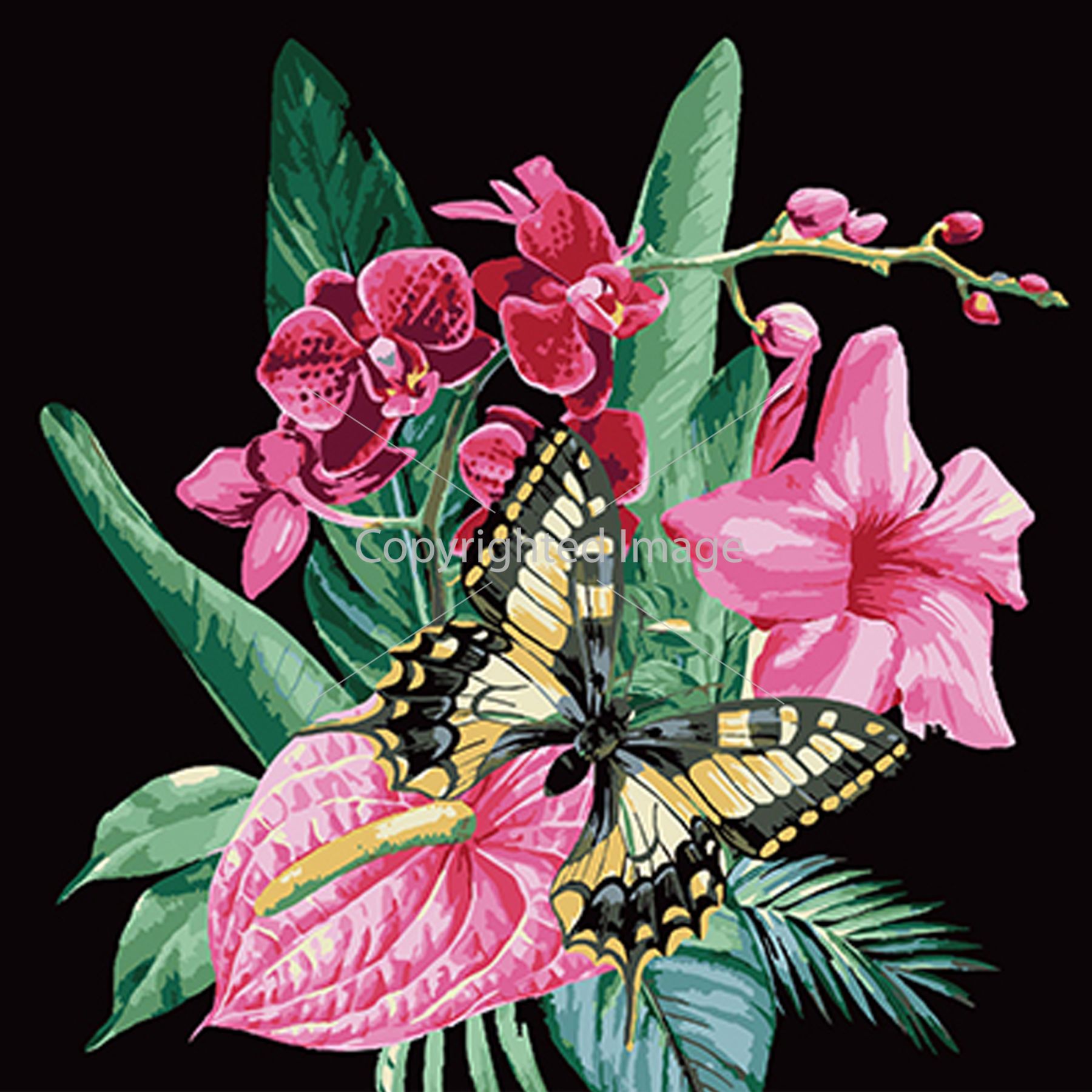Картина за номерами Strateg ПРЕМІУМ Розкіш квітів на чорному фоні розміром 40х40 см (AV4040-32)