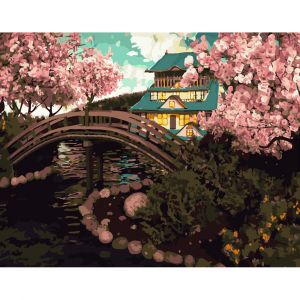 Картина за номерами Strateg ПРЕМІУМ Сакура над містком розміром 40х50 см (GS452)