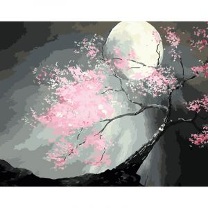 Картина за номерами Strateg ПРЕМІУМ Сакура в місяці з лаком та з рівнем розміром 40х50 см (GS1484)