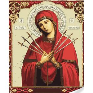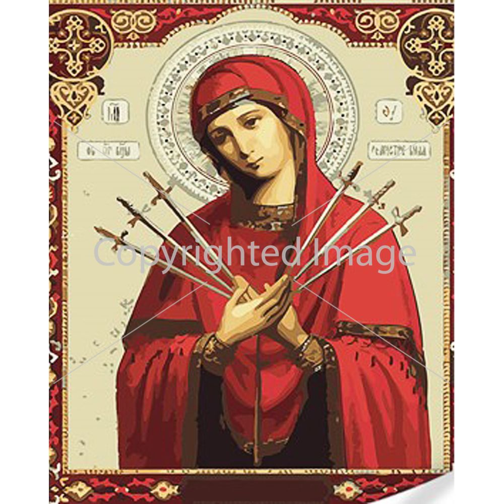 Картина за номерами Strateg ПРЕМІУМ Семистрільна ікона Божої Матері з лаком та з рівнем розміром 30х40 см (SS1097)