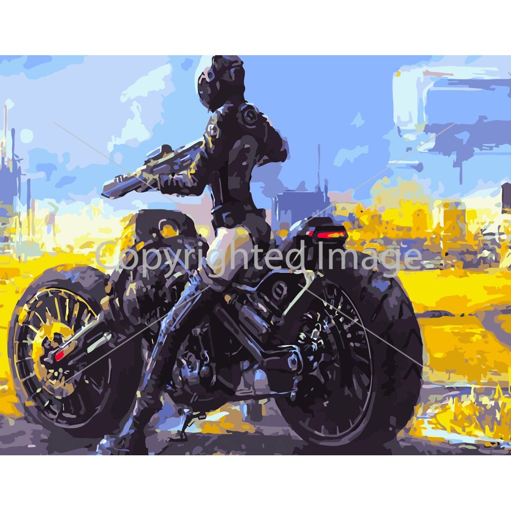 Картина за номерами Strateg ПРЕМІУМ Шалена байкерша розміром 40х50 см (GS389)