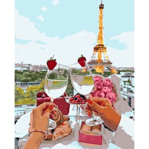 Картина за номерами Strateg ПРЕМІУМ Шампанське в Парижі з лаком розміром 40х50 см VA-3004