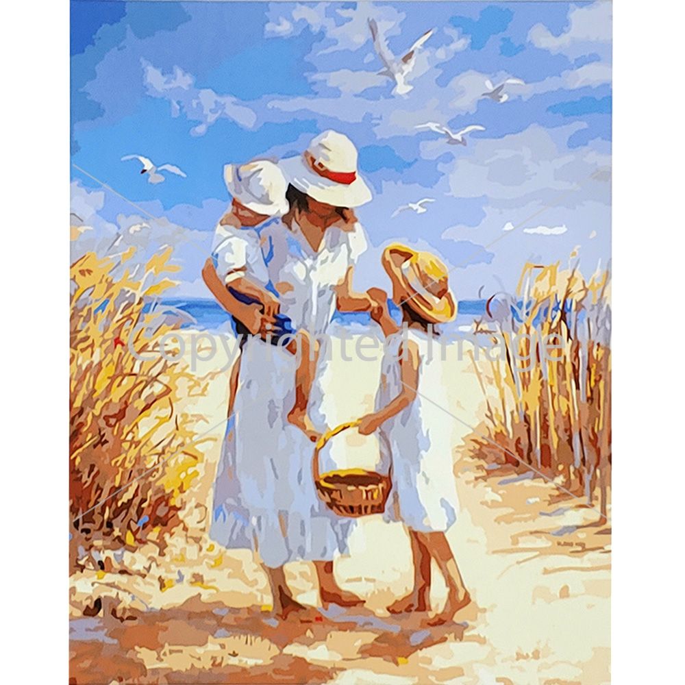 Картина за номерами Strateg ПРЕМІУМ Сім'я біля моря з лаком розміром 40х50 см (SY6683)